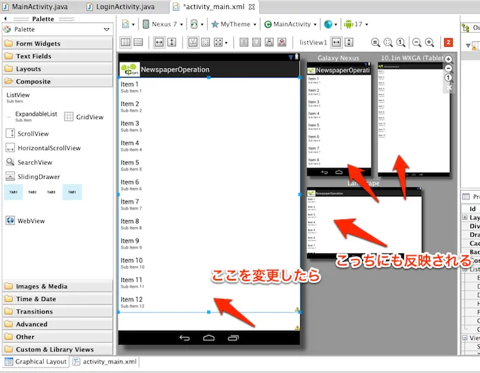 ##FragmentまたはListViewのレイアウトの変更が、コンフィグレーションにも適用されるようになりました。